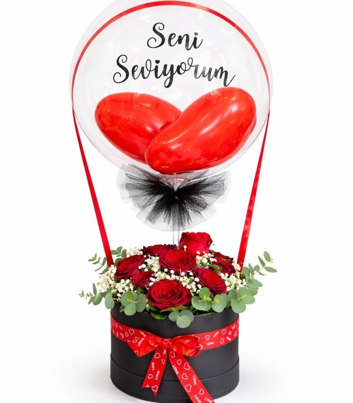 Bobo Balonlu kutu Gül Aranjmanı