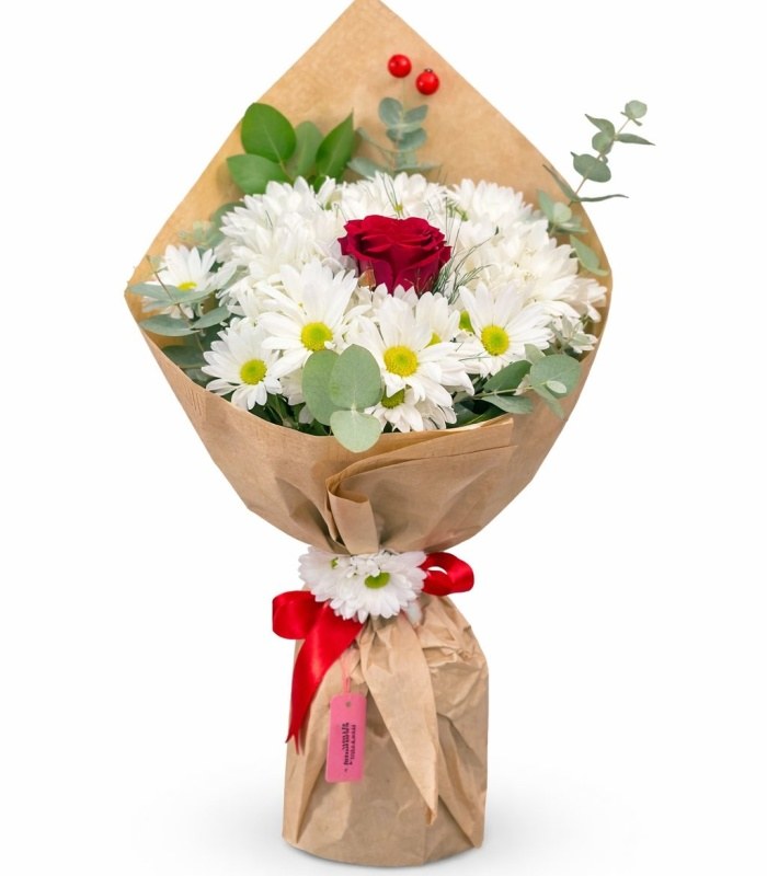 Beyaz Papatya Tek Gül Buketi